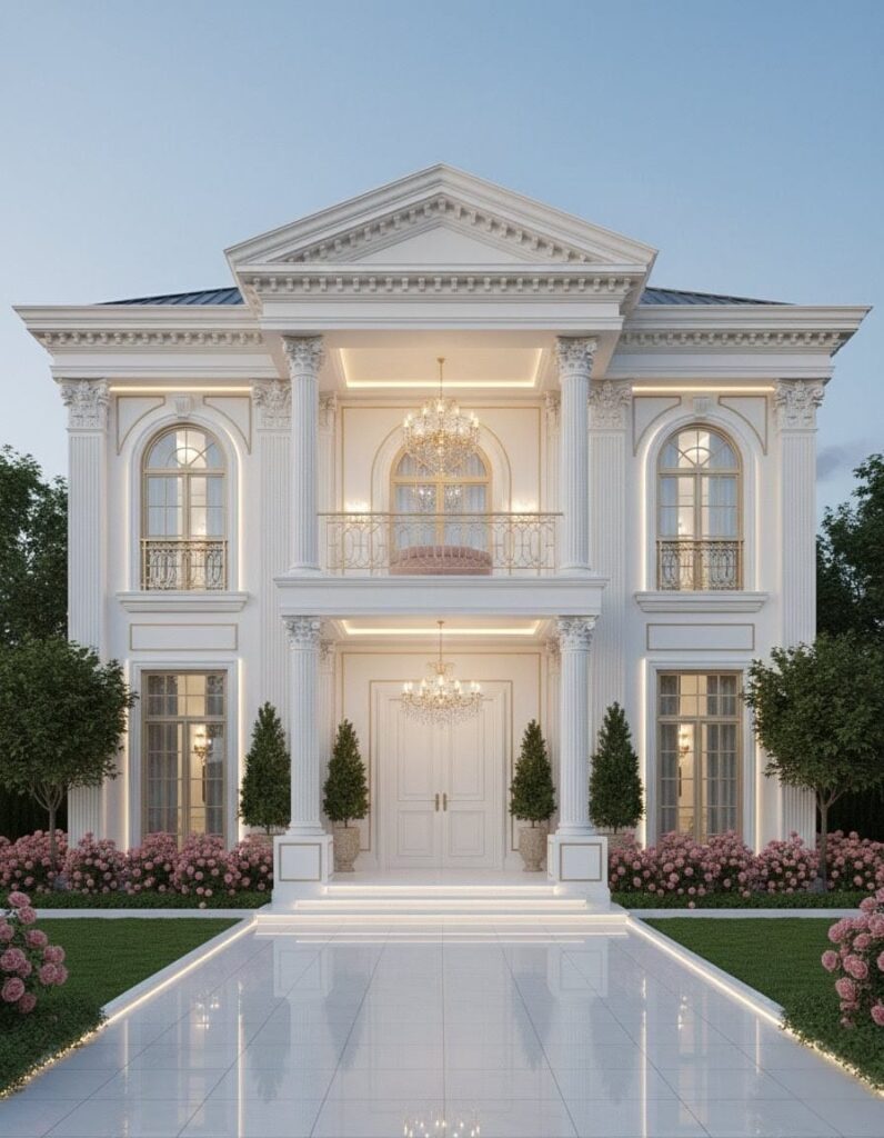 Designing a luxury pink & white theme house is about mixing elegance with comfort. This style, often called Neoclassical or Regencycore, gives your home a royal, modern look.