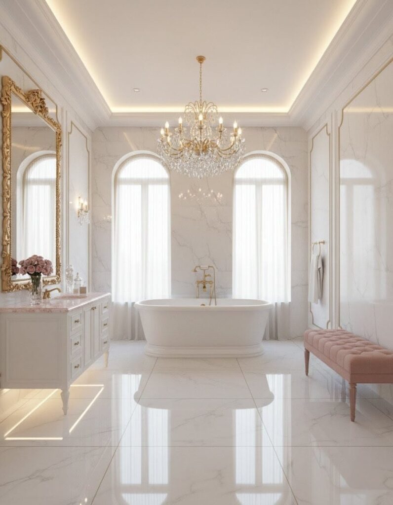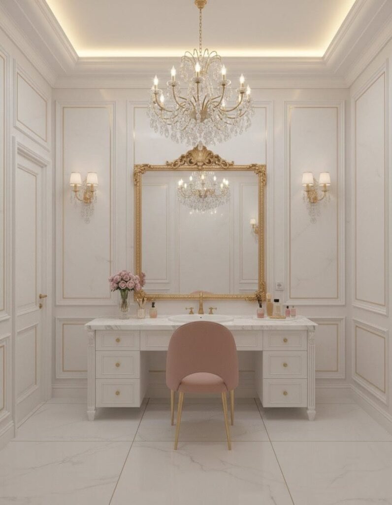 - Luxury Gold: Use gold accents on mirrors, chandeliers, and furniture legs to add a refined, royal feel.